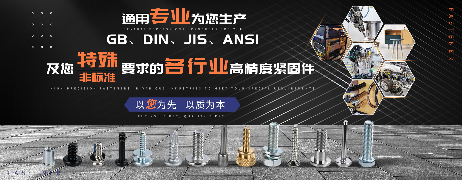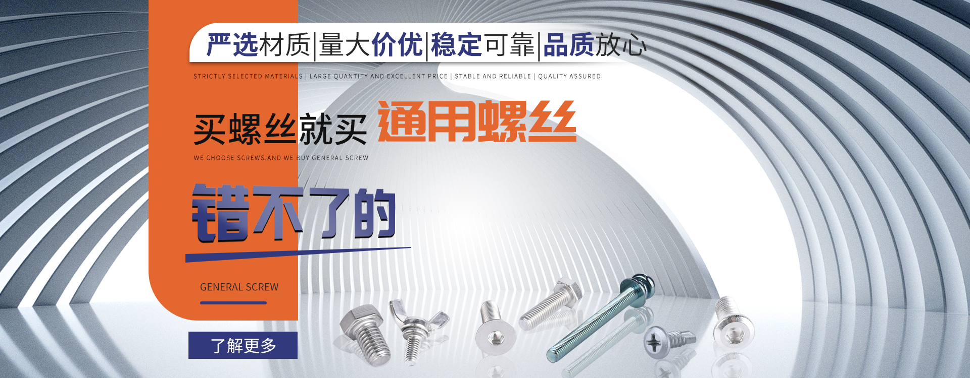中山市通用螺絲制造有限公司成立于1987年,工廠坐落于廣東四小虎之一的中山市,北連廣州,毗鄰港澳。總占地面積14000m 2,足有兩個足球場。1998年通過德國萊茵TUV ISO9002認證,于2002年通過TUV ISO9001:2000認證。2008年通過ISO 14000認證。我司主營自攻螺絲、組合螺絲、機械螺絲、防松螺絲等標準和非標準件,既可按客戶的要求提交所需的產品,也可為客戶量身定做所需產品。我司擁有專業的產品檢測隊伍和投影分析儀、金相、硬度計(韋氏和洛氏)、扭矩力測試計等完善的檢測設備,為電子、電器、五金塑料、衛浴、家具、機械、汽配等行業提供符合歐盟質量、環保要求的產品2006年,我司自主開發的ERP管理系統,使我們的生產和服務效率得到了極大的提高 經過三十多年地摸爬滾打,依靠眾多新老顧客的支持,通用螺絲逐漸成長為國內知名的緊固件供應商。了解更多 >>